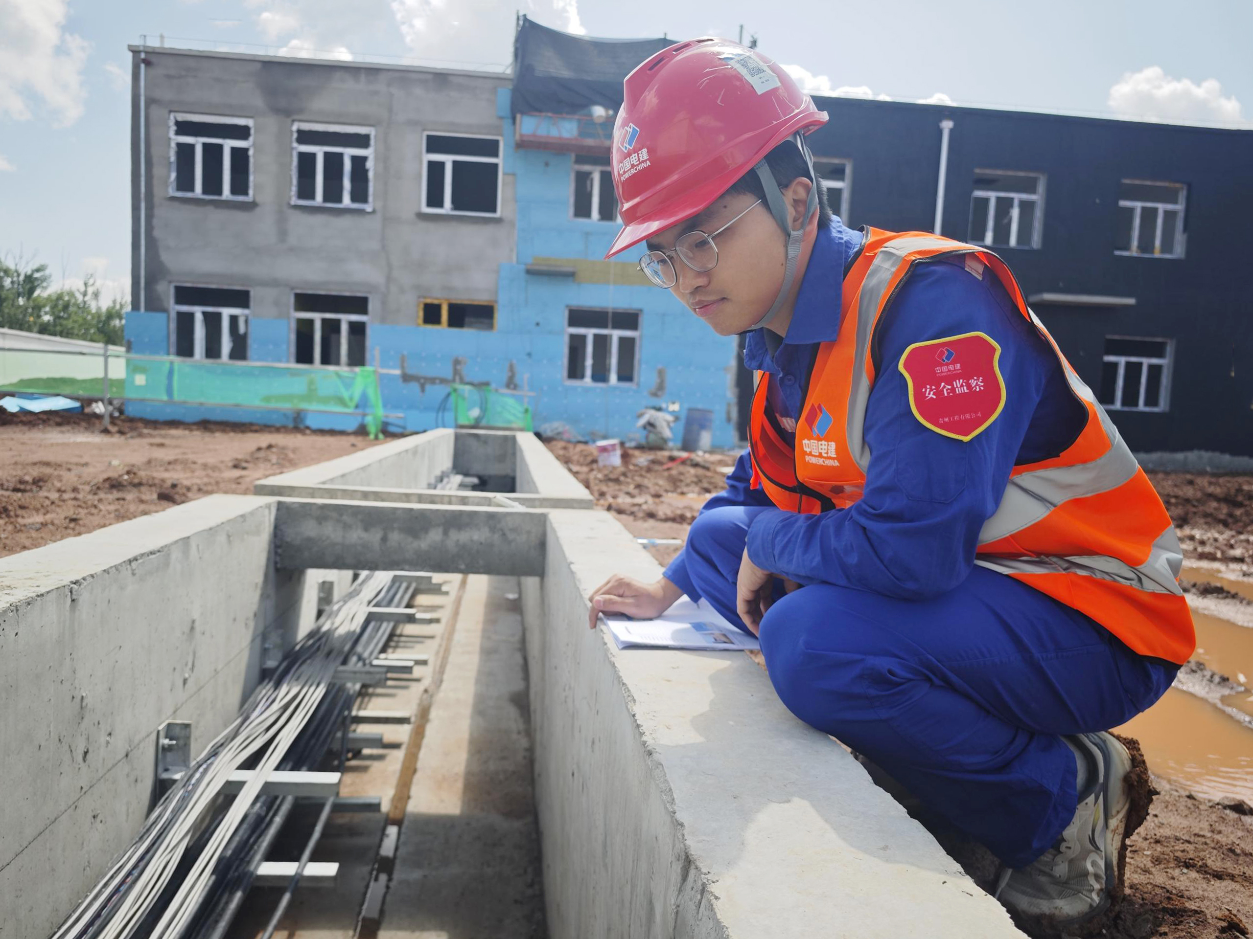 自2024年6月項目開工以來,他負責現場安全大小事宜,無數事故的源頭在他手中被扼制。目前項目正處于汛期疊加高溫天氣的特殊階段,又逢升壓站開始大規模的電器設備安裝和調試,這讓輝弟額頭上添了幾片愁云,他為此也增加了對項目的巡檢的頻次。有天傍晚,他遠遠看見有村民帶著小孩走進場站拍照,準備下班的他又戴上安全帽,大步流星追了上去。“施工現場危險因素多,萬萬不可擅自進來”同樣的話語,每逢遇見安全意識淡薄的村民,輝弟都會不厭其煩地說一遍,并護送他們安全離開。